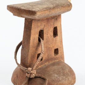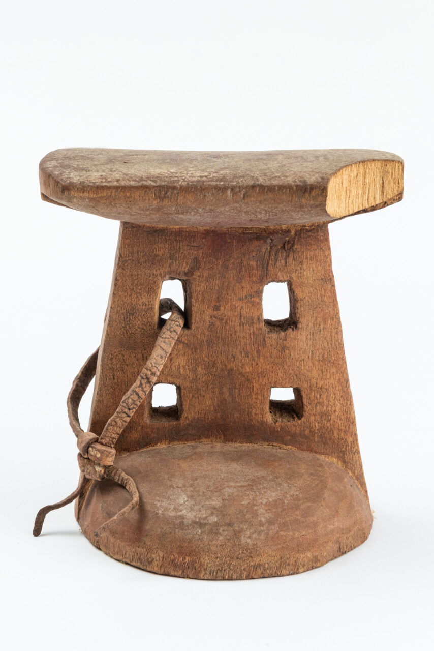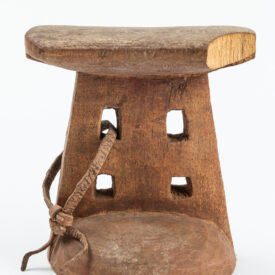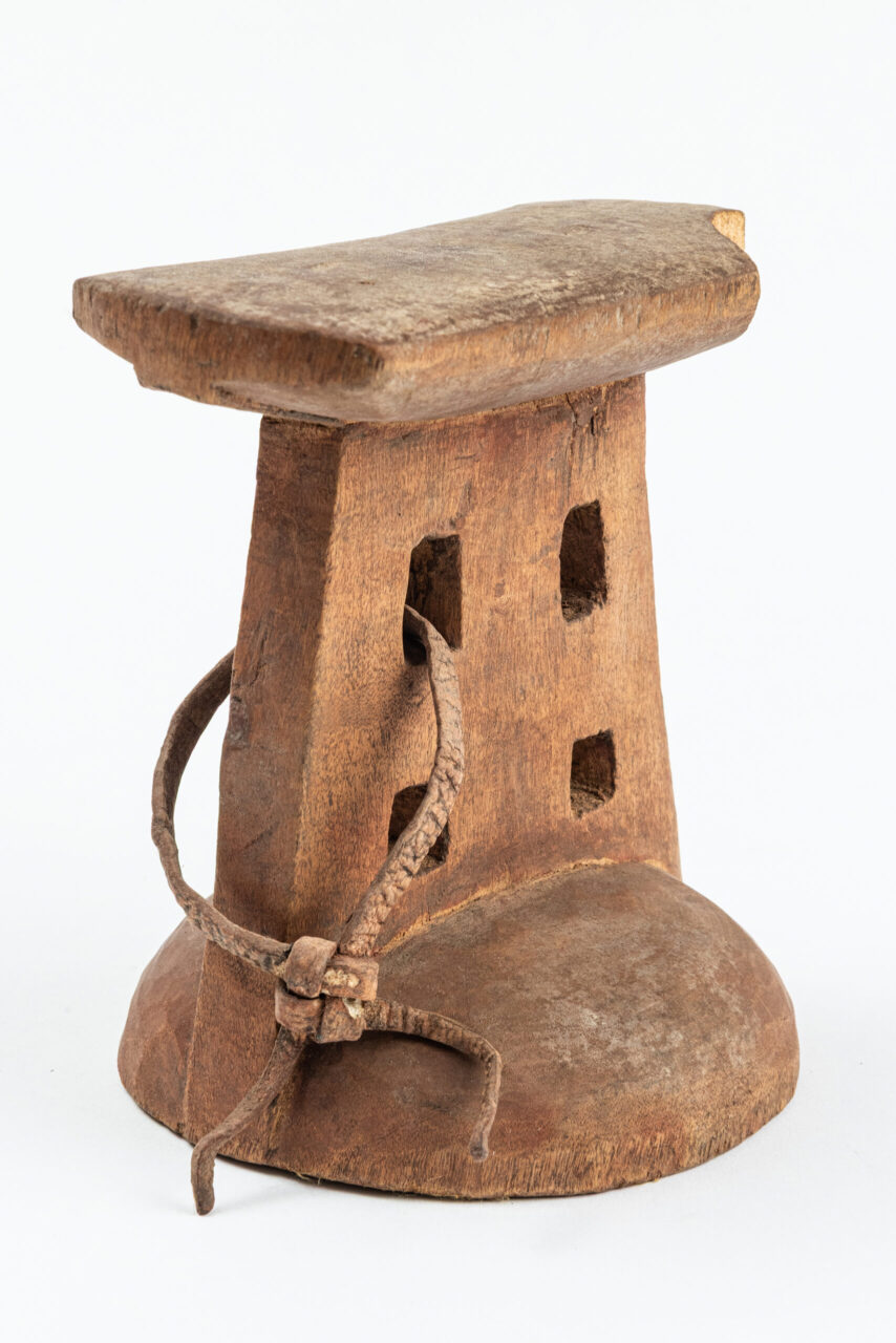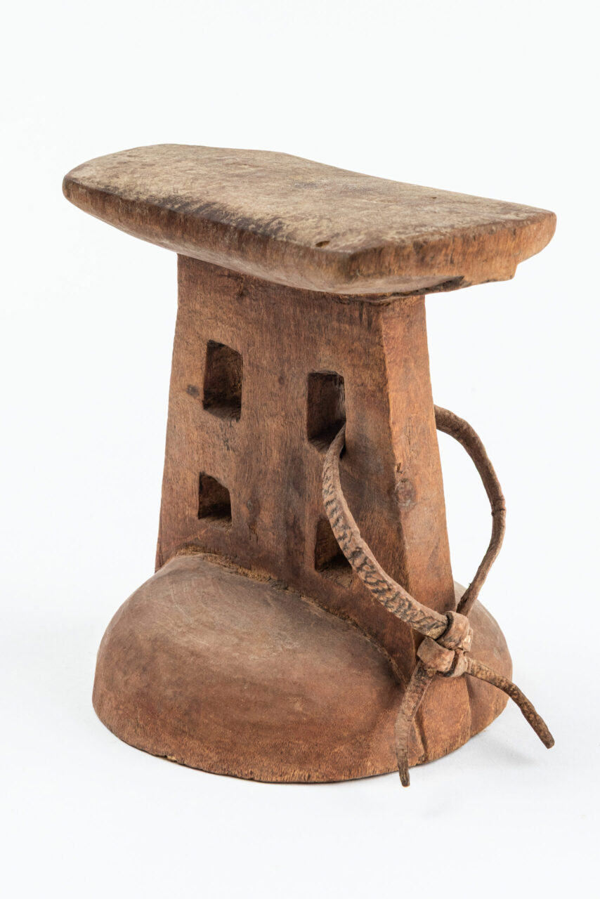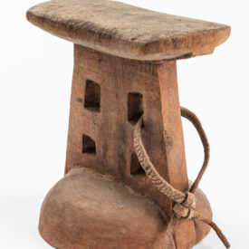 Apoio de nuca. Madeira e couro.
